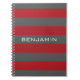 Red and Gray Rugby Stripes with Custom Name Spiral Notebook