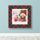 This festive plaid Christmas holiday wall art canvas features a custom square family photo space framed by a red, hunter green, and black watch Scottish tartan plaid pattern background. Photo tip: crop your photo to a square shape prior to upload.