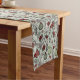 This festive country Christmas table runner features a hand-drawn country Western pattern with reindeer skulls and antlers, red roses, cactus plants and poinsettias in black ink against an elegant sage background, capturing the spirit of Christmas.