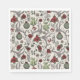 These festive country Christmas paper napkins feature a hand-drawn country Western pattern with reindeer skulls and antlers, red roses, cactus plants and poinsettias in black ink against an elegant cream background, capturing the spirit of Christmas.