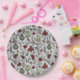 These festive country Christmas paper plates feature a hand-drawn country Western pattern with reindeer skulls and antlers, red roses, cactus plants and poinsettias in black ink against an elegant soft grey background, capturing the spirit of Christmas.