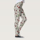 These festive country Christmas women's leggings feature a hand-drawn country Western pattern with reindeer skulls and antlers adorned in red roses, cactus plants and poinsettias in black ink against an elegant cream background, capturing the spirit of Christmas.