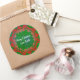 A holiday theme forest green background with a blue and green pine pattern created from a vintage etching. Add your own personal message to this sticker!