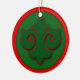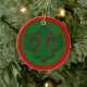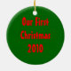 A ceramic fleur de lis Christmas ornament. On the front, a Christmasy green background, with red "writing", and a green fleur de lis design. The back is plain green, and we added the text "OUR FIRST CHRISTMAS 2010". You can keep that text or remove it, OR you can change it by typing in your own text! It's customisable that way. Makes a great holiday gift, or looks beautiful on your Christmas tree or Christmas packages.