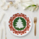 Red and Green Floral Christmas Tree Dinner Paper Plate