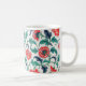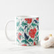 This is a colourful watercolor vintage floral pattern with red flowers and green leaves on a white background.