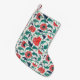 This is a colourful watercolor vintage floral pattern with red flowers and green leaves on a white background.