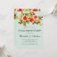Elegant and simple engagement party invitation design featuring red watercolor roses, green foliage on a mint green background. Reverse side of the invitation is also in mint green colour.
