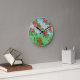 The clock did not take as long to arrive as I thought it might and was extremely well packaged. I didn't do the measurements so I didn't realize it is a little smaller than the average clock but that does not matter (just make sure you check if that's important to you).It is really nifty! It seems very solid and well made not flimsy at all. It has been going well and has kept good time in its few weeks on my wall. Nice product. Gets noticed too! Nicer in real life than the picture but true to the picture