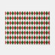 The alternating red and green harlequin diamonds on a white background keep this argyle pattern tissue paper bright and cheery. The golden thread "stitches" everything together in a classic argyle.