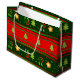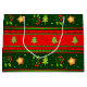 Present your gifts in style! Perfect for festive presents, this Large Gift Bag, featuring red and green large horizontal stripes, embellished with green Christmas trees, red flowers with green leaves and cute golden stars, will add a burst of colour to your gift giving. This is a great way to present any special surprise this Christmas!