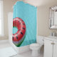 Red and green lifebuoy on swimming pool shower curtain
