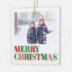 Celebrate the season with this Merry Christmas photo ornament, perfect for showcasing your family memories. Designed with modern typography in festive red and green, it features bold lettering and a simple, minimalist layout that complements any holiday style. This Christmas tree decoration offers a clean yet festive look, making it a timeless keepsake for your loved ones. A minimal design with maximum holiday cheer.