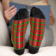 * A red, green and black pattern, tartan / plaid design covers these all-over-print socks.