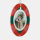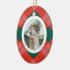 Red and Green Plaid Family Photo Oval Christmas Ceramic Tree Decoration