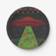Red and Green UFO Tractor Beam Ugly Christmas Paper Plate