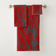 Red and Grey abstract Bath Towel Set
