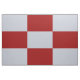Stylish geometric fabric features a bold chequered pattern of red and grey rectangles in this simple graphic design.