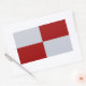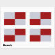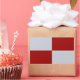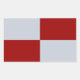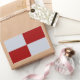 Two red rectangles and two grey rectangles form a chequered pattern in this clean graphic design.
