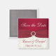 ****PLEASE NOTE that the ribbon and jewels are printed images, and are not real. This red and ivory damask save the date magnet matches the invitation and other items shown below. If there are any other matching items you require, please email your request to niteowlstudio@gmail.com.