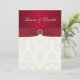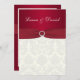 This elegant red and ivory damask wedding invitation is shown here formatted for a wedding invitation but it can be customised to be used for many special events, such as for a special anniversary, birthday, sweet sixteen, quinceanera, or Bat Mitzvah. **** PLEASE NOTE the ribbon and jewels are print images, and are not real. If you need help customising this invitation, or if you would like additional matching items, email niteowlstudio@gmail.com with your request.
