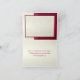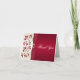 This red and ivory floral thank you card has a red PRINTED RIBBON and BOW with a PRINTED gemstone and jewel brooch on it that matches the wedding invitation shown below.