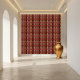 Add depth and visual intrigue to your space with this captivating African geometric pattern tile. The intricate arrangement of lines and shapes, rendered in a warm spectrum of reds, browns, and subtle gold tones, creates a textured appearance that draws the eye.
