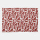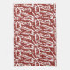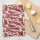 Red and orange abstract shapes blend and overlap a tea towel