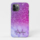 This girly purple marble and glitter iPhone 11 Pro mobile phone case can be personalised with your name and monogram.