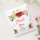 This beautiful and elegant bridal shower favor bag features watercolor red, pink and orange roses with foliage. The text combines handwritten script and serif fonts for a stylish and modern look. This is perfect for a summer rustic bridal shower.