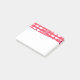 This Post-It notepad has an art deco design of diamonds and triangles that look like bowties in red and pink.