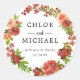 Chic and modern floral wreath features red and coral pink flowers. Wildflowers and berries give it a hip and trendy boho vibe. The bridal couple names are written in a classic serif font There is a thank you sentiment and the wedding date below. All of the text can be easily customise. Add a special touch to your wedding favour bags and boxes with this wedding favour seal. This sticker is designed to coordinate with the Gathering collection. It is perfect for an autumn, fall or winter wedding.