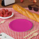 Red and pink polka dot wrapping paper with evenly plate
