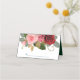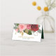 Here's a pretty folded wedding place card that features a top border of stunning pink and red roses nestled among green leaves. The roses and leaves are amazingly realistic, but are actually fine art renderings. Below the roses image is your custom text in dark green and gold. The images and text are placed on a wedding white background. Perfect for wedding receptions in any season! Be sure to see the matching wedding products, including invitations and RSVP cards, in our store.