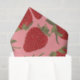 Add a sweet touch to any gift with this patterned tissue paper. It has an all over pattern featuring realistic style illustrations of ripe red strawberries against a pretty pink background.