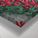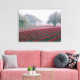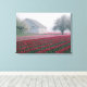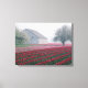 Red and pink tulips greet the day on a misty canvas print