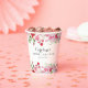 These elegant bridal shower paper cups feature a beautiful watercolor frame of red and pink roses. The text is grey. (This is part of the Red & Pink Roses Collection.)