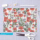 Beautiful pattern features a "field" of red and light purple poppies in full bloom on white background