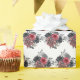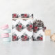 This fun and whimsical wrapping paper features red and silver elegant flowers.