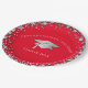 This modern design features a graduation hat and confetti in silver on a background of red with white text.