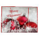 Elegant Christmas and New Year red and silver gift bag with beautiful glittery Christmas baubles, white sparkling lights, shiny pearls, tinsel and a space for your text.