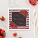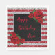 Red And Silver Stripes Glitter Red Roses Birthday Napkin