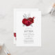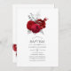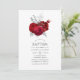 Chic vintage red coloured roses baptism invitation with accents of silver foil.