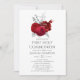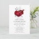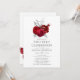 Chic vintage red coloured roses first holy communion invitation with accents of silver foil.