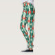 Bold and bright midcentury retro vibe geometric pattern leggings in teal green, dark green vintage red and ivory.