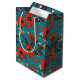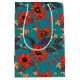 Red and Teal Floral Pattern Medium Gift Bag