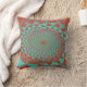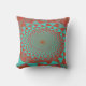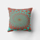 Triangular shapes in shades of Red spiral out from Turquoise background in this Fractal Abstract pattern Throw Pillow.