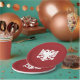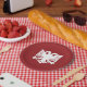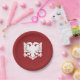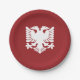 Red paper plate with white Albanian eagle design