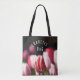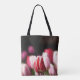 Modern lettering to this customisable bag of red, white and pink tulips gives it a very classy look