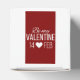 Red and white striped Valentine's day design incorporating a white "Be My Valentine" message, a white heart under the message along with the date of 14 February.